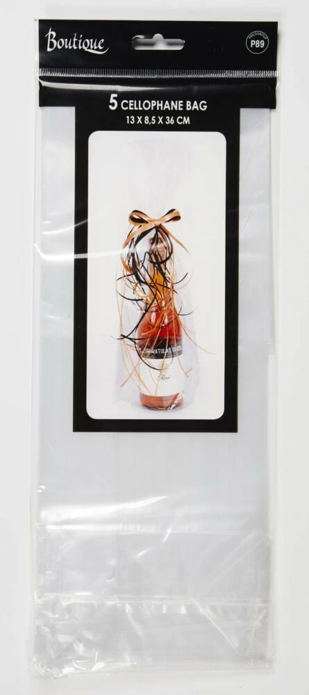 5 pk cellofan gavepose, 13 x 8,5 x 36 cm
