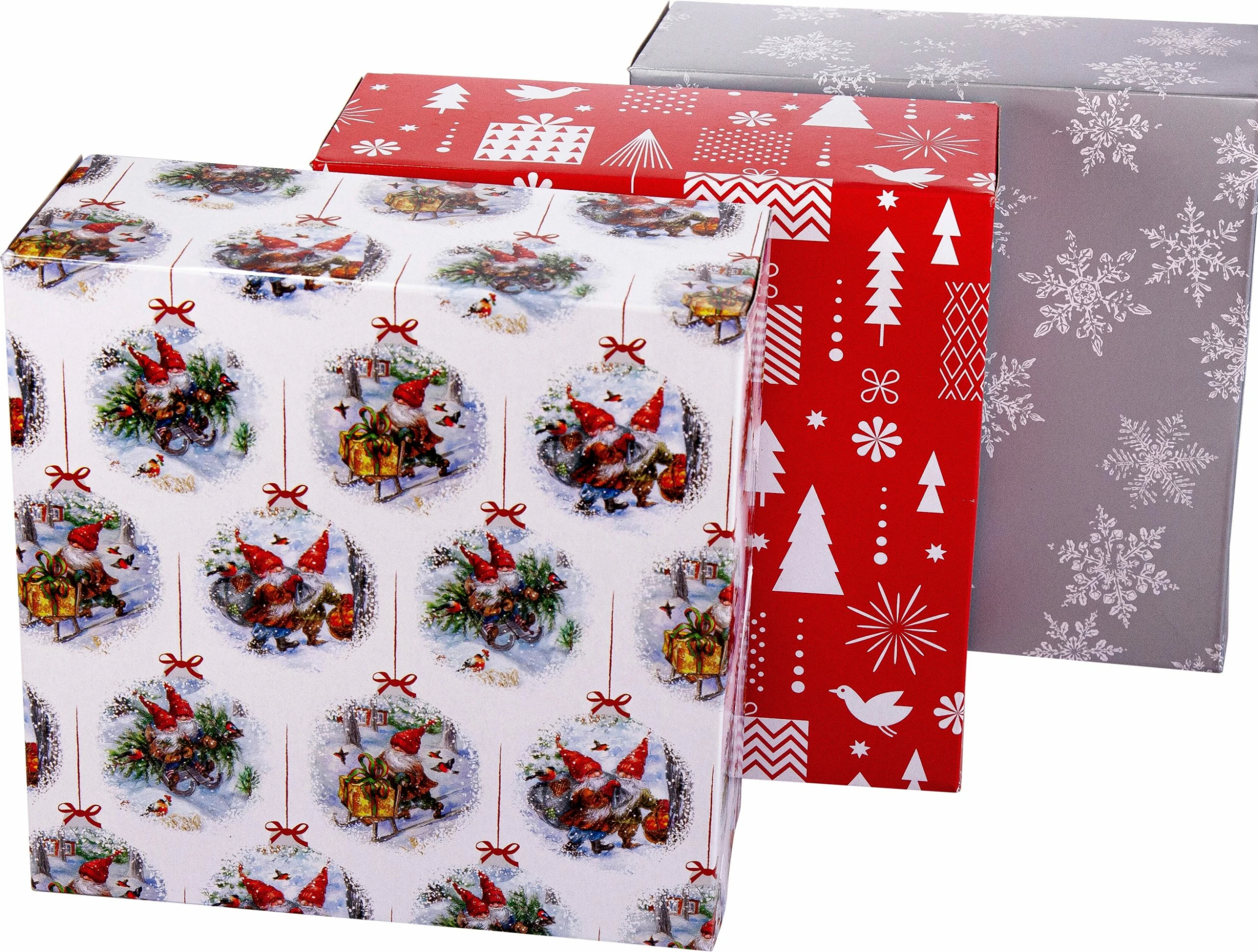 3pk 24 x 24 x 10 cm gaveesker med lokk, i papp