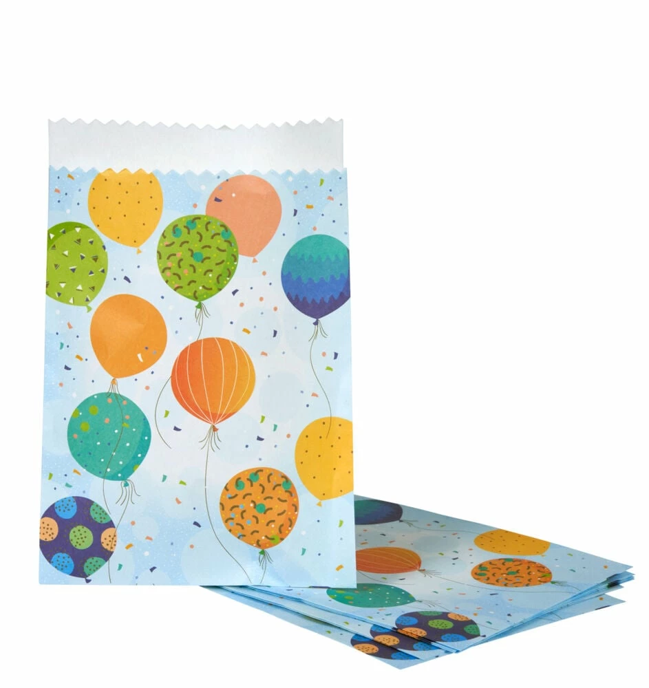 Godtepose i papir, med ballong-motiv. 8 poser i pakken