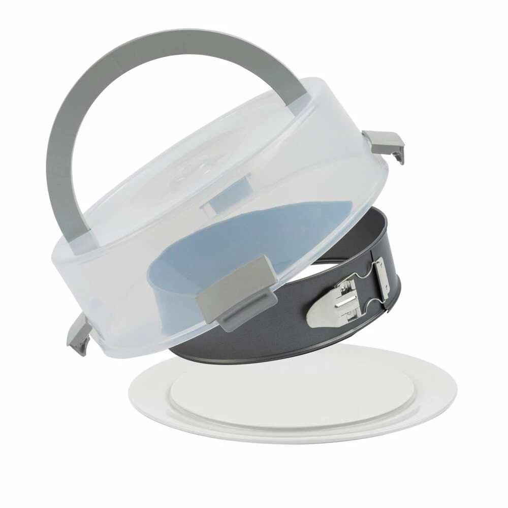 Kakeform m/non stick belegg 26 cm, porselensfat 34 cm og plastlokk. Du kan steke, oppbevare, fryse, frakte og servere kaker!