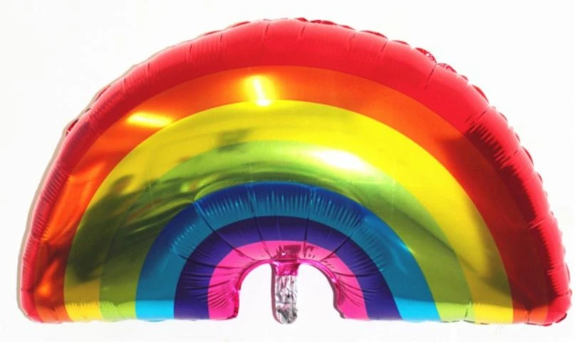 Folieballong med regnbuefarger, formet som en regnbue