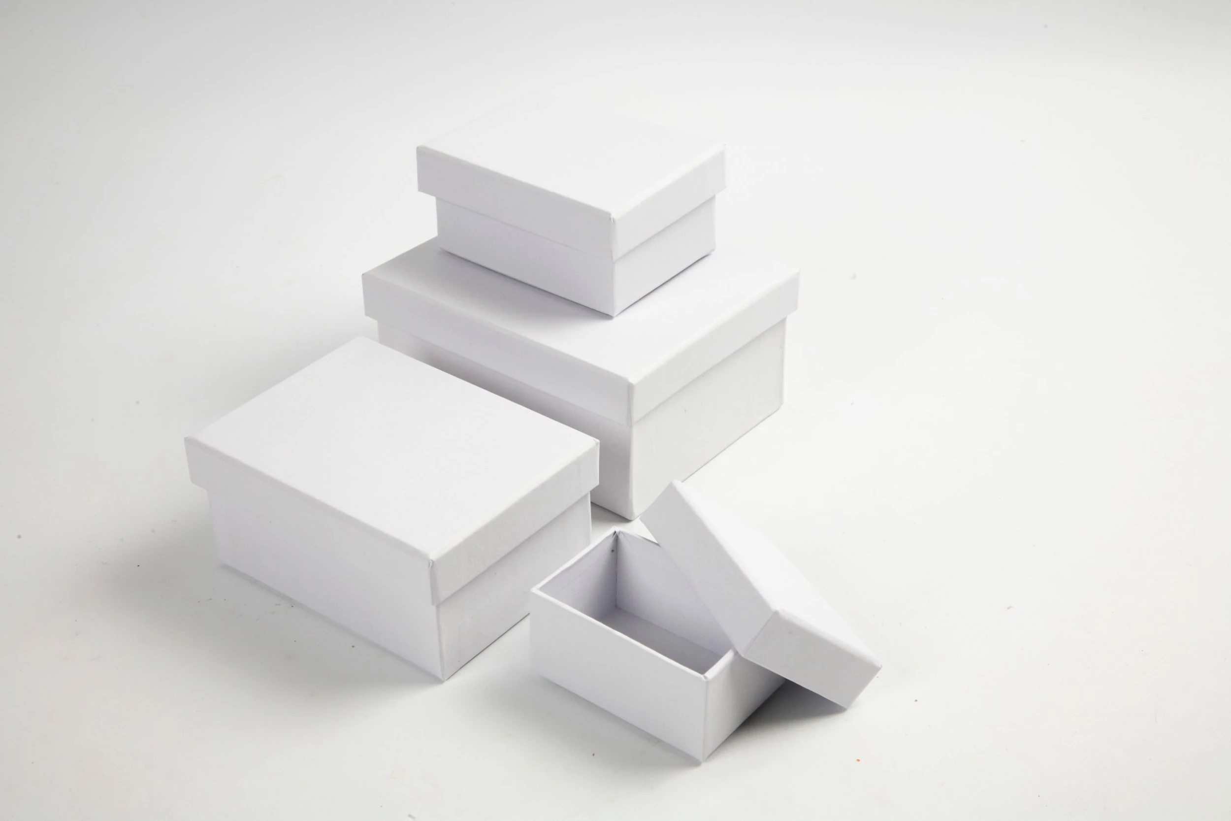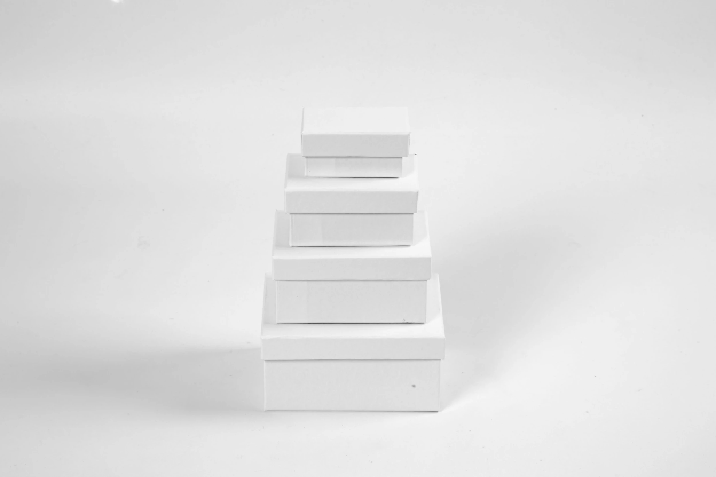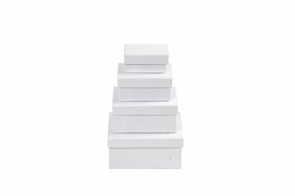 Rektangulære esker av papp. Sett med 4 str. 5×7,5+7×9,5 cm, str. 8,5×11,5+11×14 cm. H: 3,5+4,5+5,5+6,5 cm