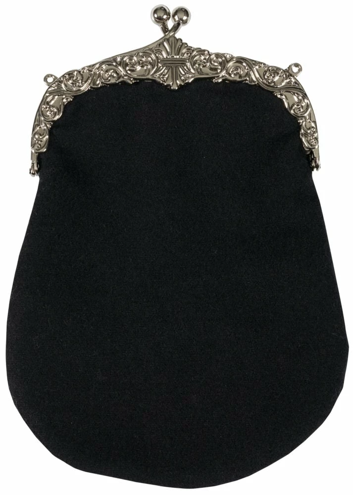 Praktisk sort veske til festdrakten, i ullstoff. Med klemmelås og sølvkjede.