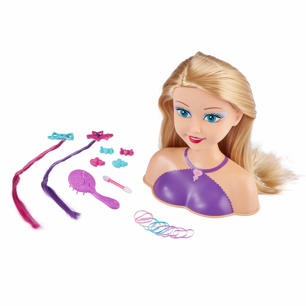 Produktnummer: 4894680003453 Kategorier: Dukker og figurer, Leker Stikkord: Passer for barn fra 3 år, Sminken hennes kan skifte farge!, Stylinghode à 20 deler, inkl hair-extensions, børste, spenner m.m