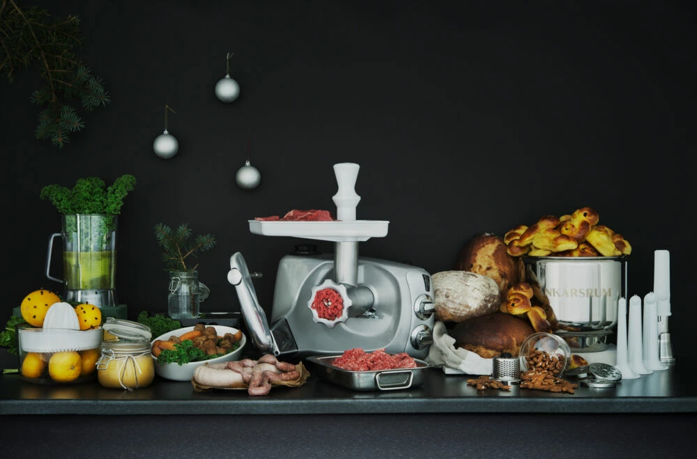 Ankarsrum Assistent Original står veldig stødig med sin vekt på hele 8,6 kilo. Det følger med en rekke tilbehør til maskinen, men det finnes også et bredt spekter av ytterligere tilbehør som kan kjøpes separat.