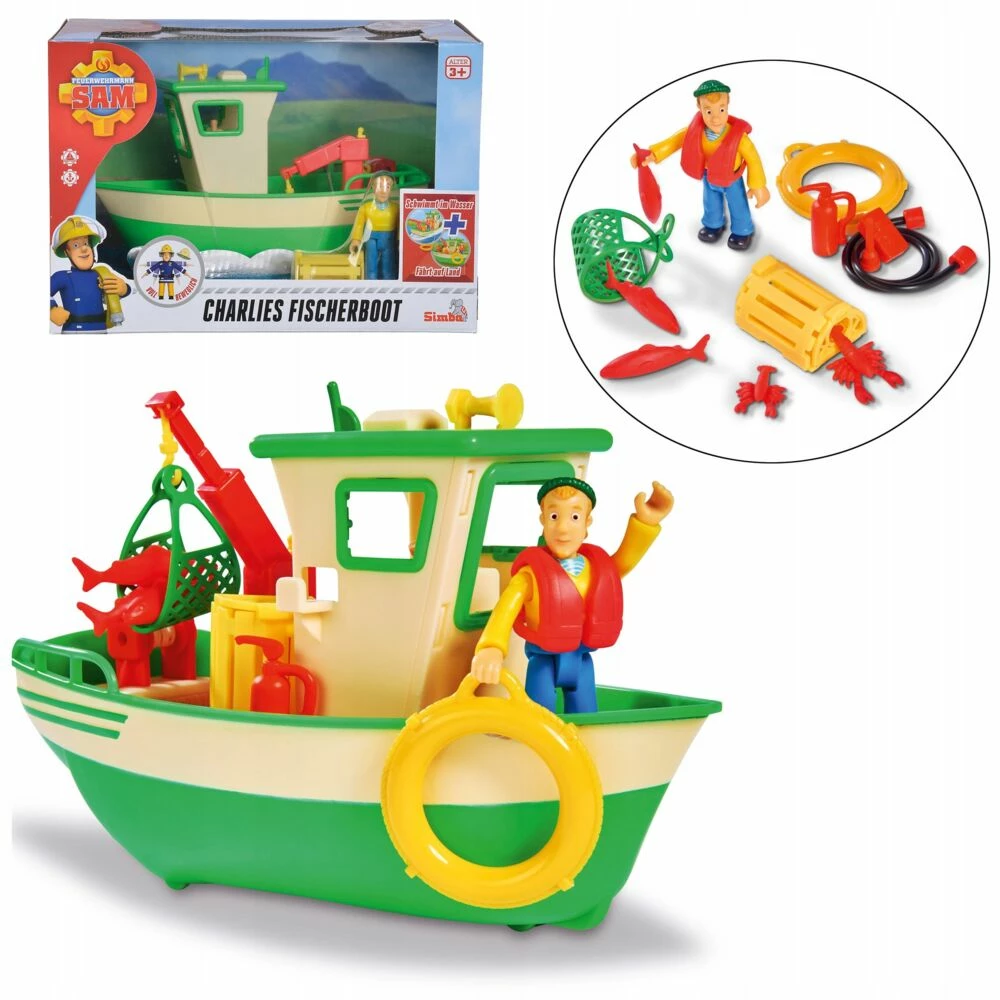 Charlie er fisker og har sin egen fiskebåt. Dette settet kommer med både figur og båt, samt tilbehør. Båten har bevegelig kran, mekanisk vinsj og tau til å feste livbøya på. I en luke på dekk finnes også brannslukningsslange, men pass deg for brannen! Fiskebåten kan flyte på vannet samt kjøre på land.