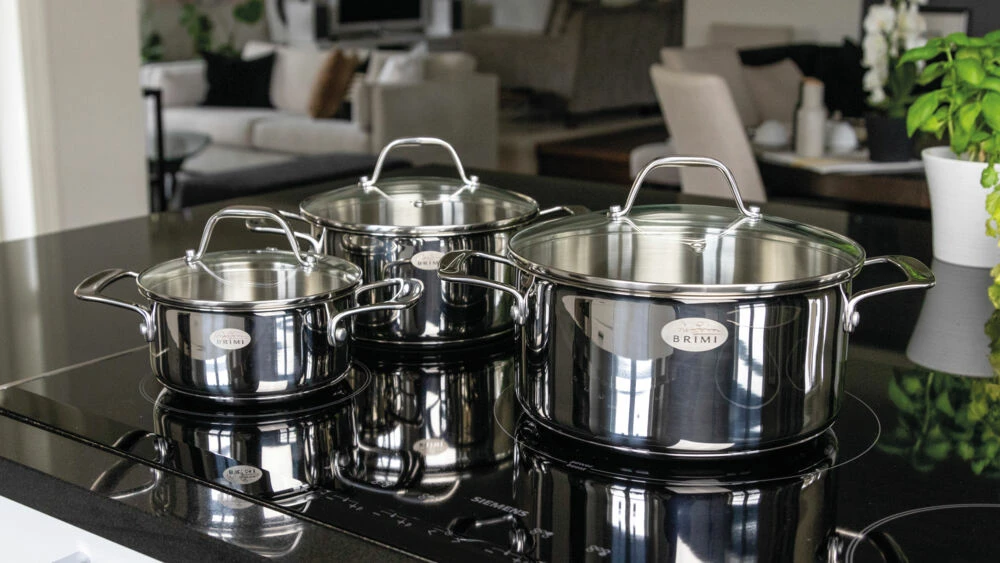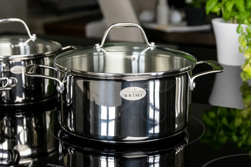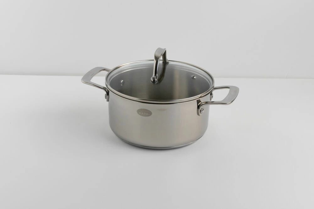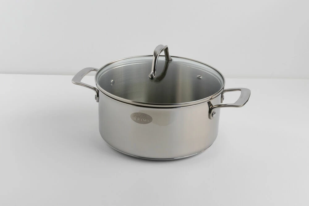 Brimi grytesett 3 deler. Grytesett beståande av 3 stk stålkasseroller med glasslokk. Flotte og praktiske størrelser. Kan brukes på alle koketopper.