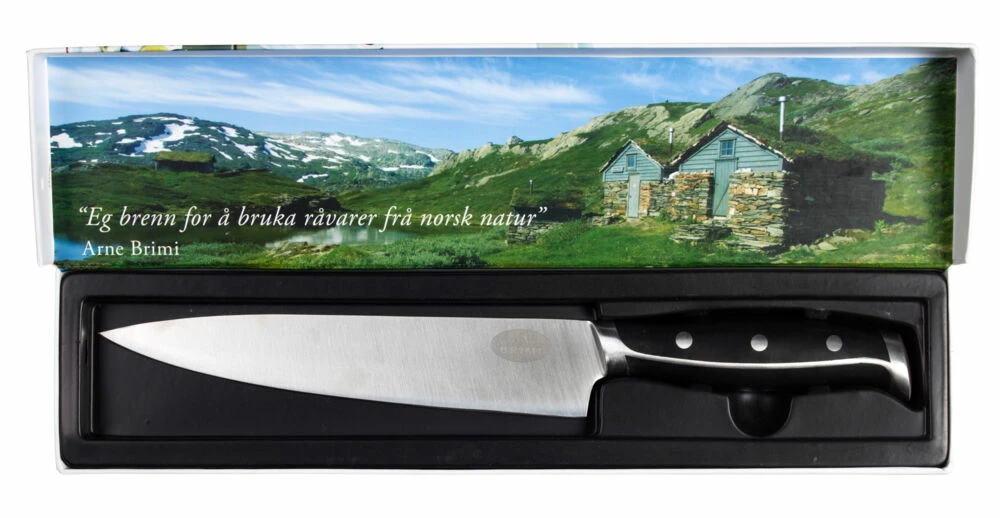 Brimi Kokkekniv 33 cm. Solid og god kokkekniv. Knivblad i rustfritt stål. Ergonomisk håndtak. Tåler oppvaskmaskin men håndvask anbefales.