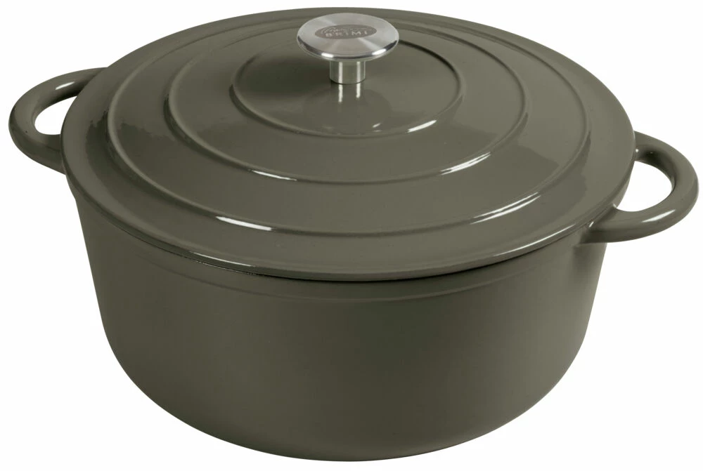 Støpejern er et materiale som egner seg godt til både matlaging og servering. Varmen fordeler seg godt i gryten, og holder lenge på varmen. Knottene på innsiden av lokket gjør at kondensen drypper ned og gir enda saftigere mat. Støpejerngrynten fra Brimi kan brukes på alle varme kilder.