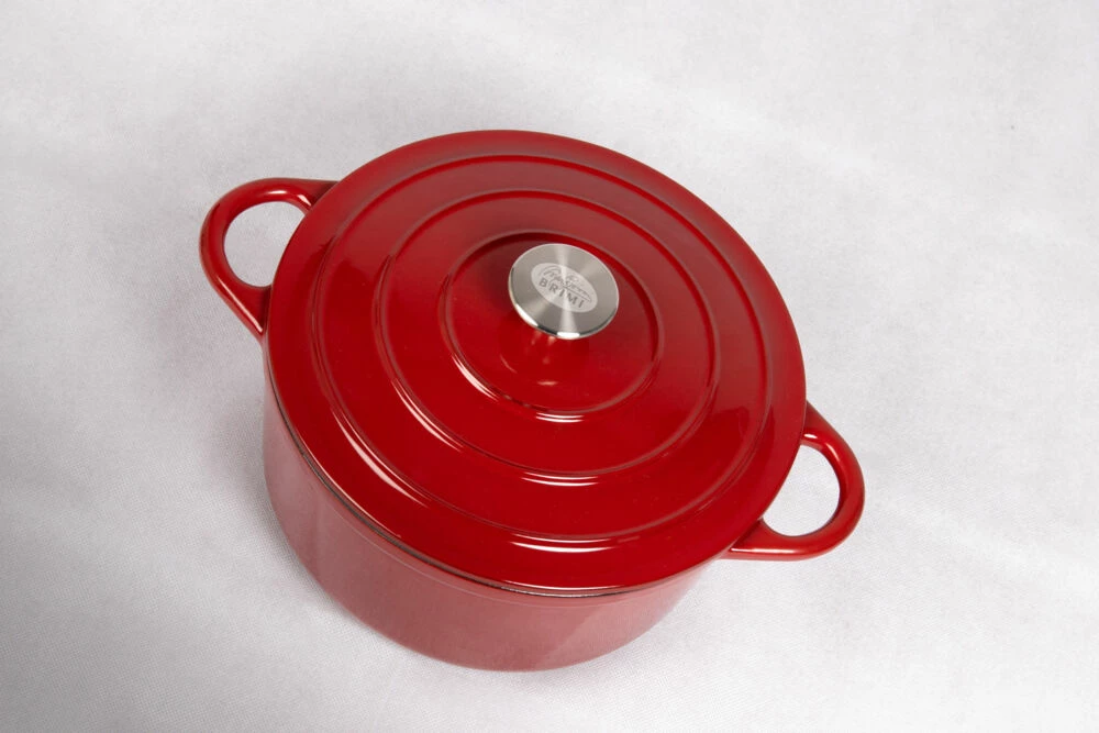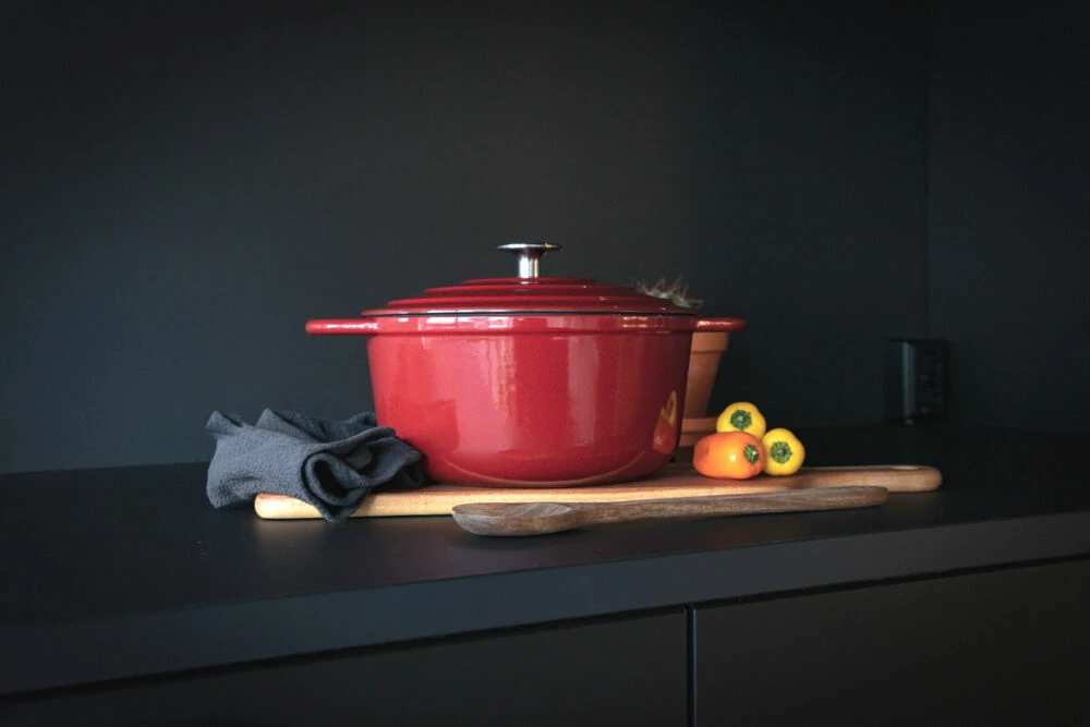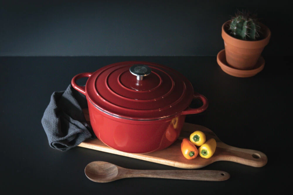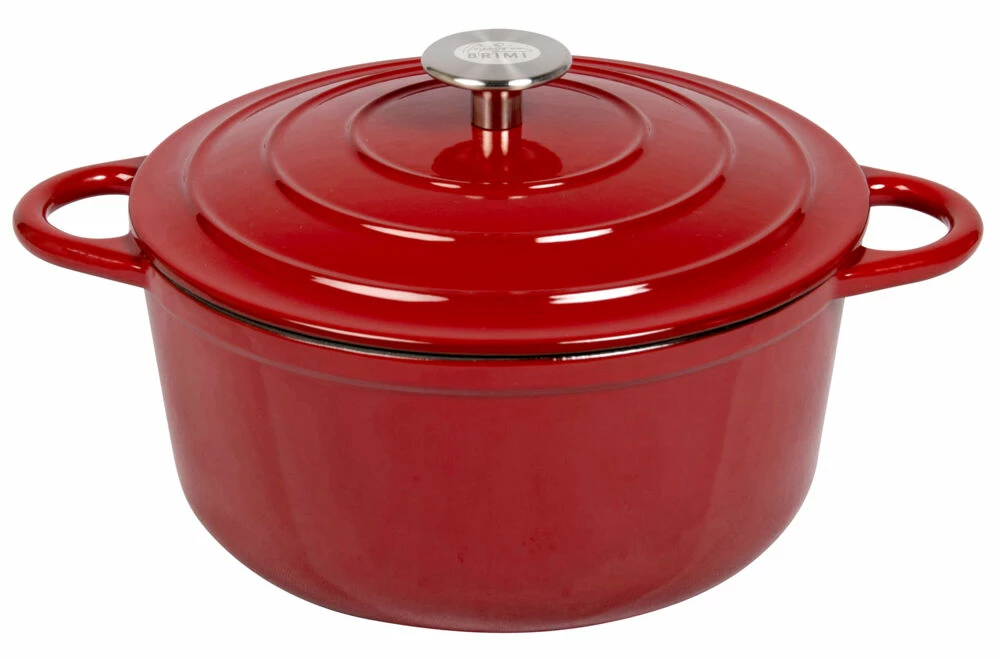 Støpejern er et materiale som egner seg godt til både matlaging og servering. Varmen fordeler seg godt i gryten, og holder lenge på varmen. Knottene på innsiden av lokket gjør at kondensen drypper ned og gir enda saftigere mat. Støpejerngrynten fra Brimi kan brukes på alle varme kilder.