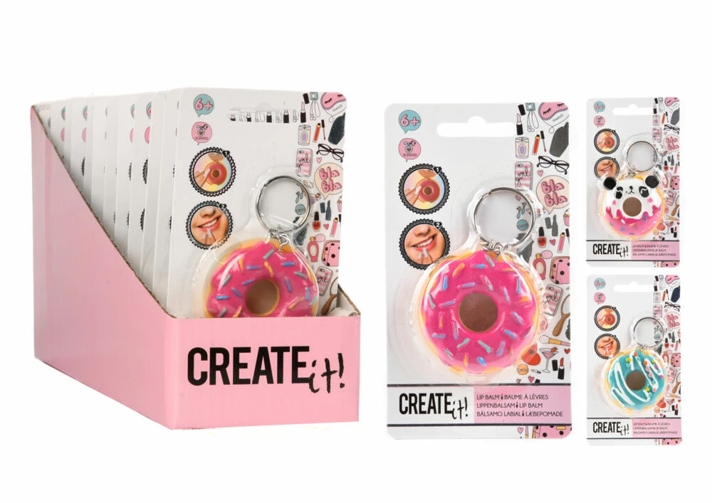 Disse søte nøkkelringene i donut-form fra Create It har et hemmelig rom! Inni dette hemmelige rommet finner du en god og myk leppepomade med herlig duft.