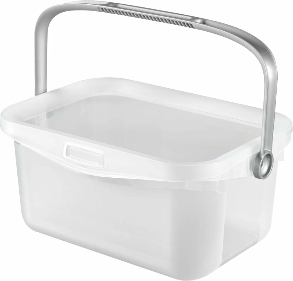 Multifunksjonell transparent oppbevaringsboks med integrert lokk og stabilt håndtak.