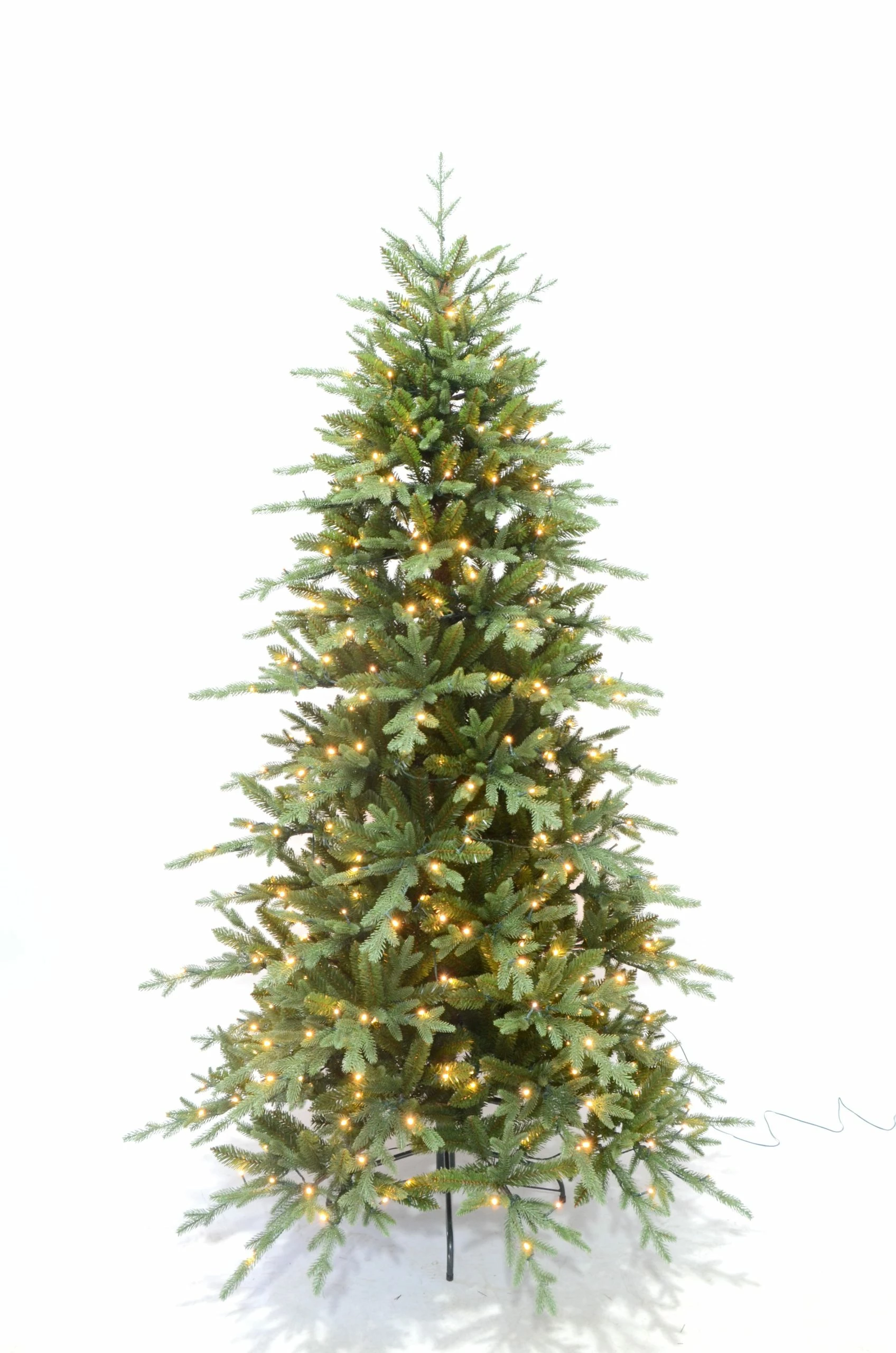 Et naturtro og stilrent tre med 400 varmhvite LED-lys ferdig montert på treet. Med 5-stegs dimmer på transformator. Høyde 210 cm. Diameter 137 cm.