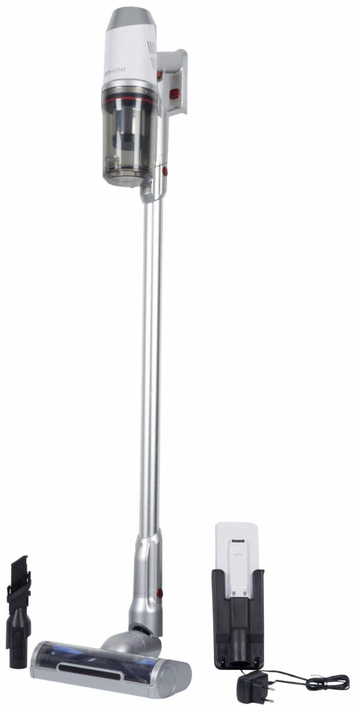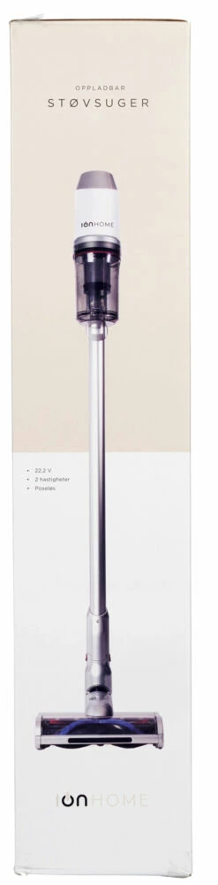 2 i 1 med stang eller som håndstøvsuger, metall filter + HEPA. Støvbeholder 1,0L. 2 hastigheter. Kalkulerer ladetid automatisk opp til 4,5 timer. Med veggfeste. Batterier kan enkelt fjernes. Oppladbart Lithium ion batteri. Roterende gulvbørste med LED lys.