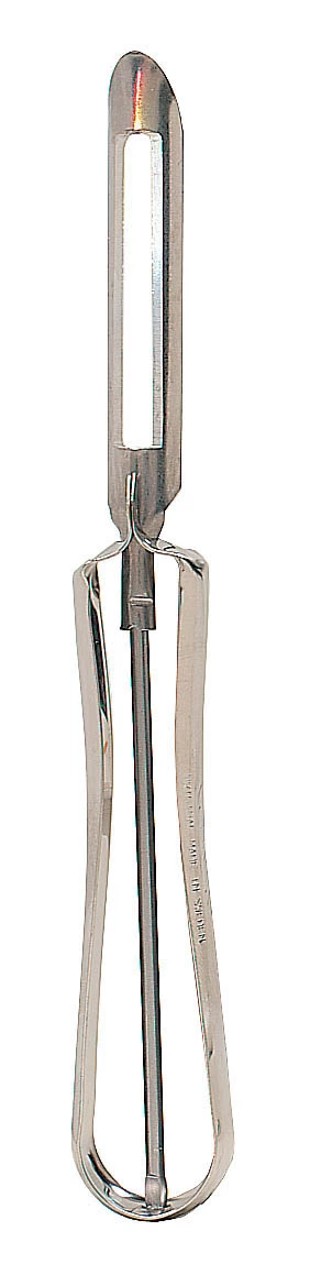 Potet/grønnsaksskreller i rustfritt stål med presisjonsslipt og vippbar kniv. Tåler oppvaskmaskin.