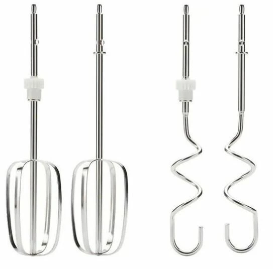 Maskinen leveres med visper og deigkroker, og ved hjelp av dem kan du enkelt tilberede for eksempel brøddeig eller pisket krem, eller piske egg.