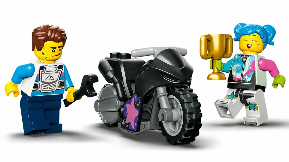 Konkurranser med flott premier venter med dette gøyale LEGO® City Stuntz lekesettet som inkluderer en svinghjuldrevet stuntsykkel og to figurer fra LEGO City Adventures TV-serien.