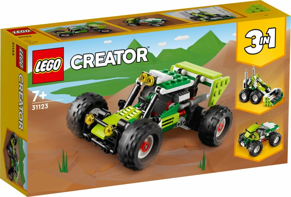 Gi unge byggere spennende kjøretøy-eventyr med det fantastiske settet LEGO® Creator 3-i-1 Terrengbuggy (31123). Barn fra sju år og oppover vil elske å kjøre i full fart med den tøffe terrengbuggyen med store dekk, imponerende veltebøyle, frontgrill og spoiler. Kreativ lek for kjøretøyinteresserte Barn får tre forskjellige bygge- og lekeopplevelser med settet LEGO Creator 3-i-1 Terrengbuggy. De kan bygge en terrengbuggy først og deretter bygge den om til en tøff kompaktlaster med kul løfteplattform eller en ATV (All-Terrain Vehicle) for enda mer konkurranselek. De kan også bruke fantasien og bygge en helt unik modell av klossene. En digital opplevelse for LEGO byggere Lekesettet inkluderer interaktive, digitale instruksjoner som gir en enda morsommere byggeopplevelse. Barn finner instruksjoner i gratisappen LEGO Building Instructions for smarttelefon og nettbrett, som inneholder verktøy for zooming og rotering som lar dem visualisere modellen mens de bygger.