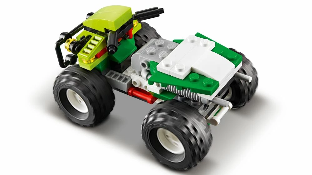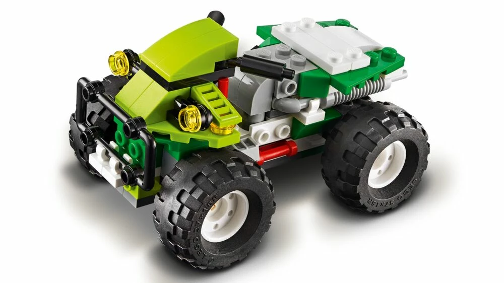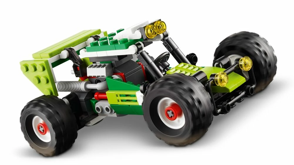 Overrask kjøretøyinteresserte barn med LEGO® Creator 3-i-1 Terrengbuggy, som kan bygges om til en kompaktlaster eller en ATV (All-Terrain Vehicle).
