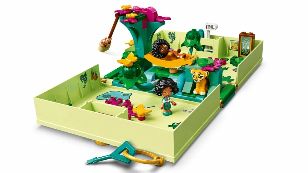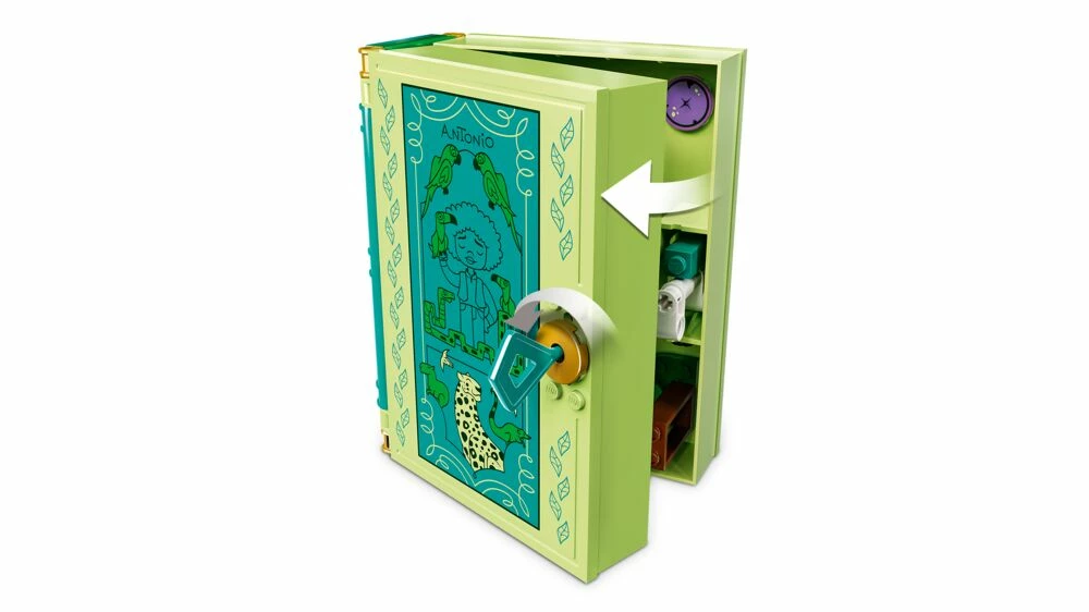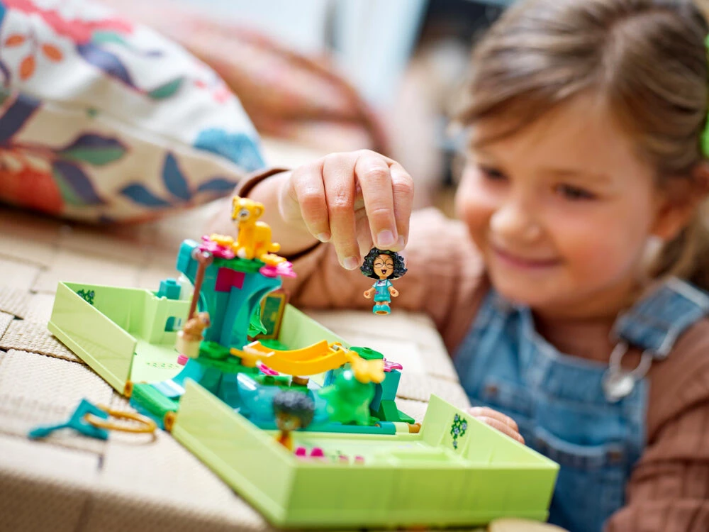 Bærbar moro: Settet kan tas med overalt, og vil gi Disney-fans mange morsomme og fantasifylte lekestunder. Det kan brukes alene eller sammen med andre LEGO ǀ Disney sett (selges separat), og inspirerende funksjoner og tilbehør gjør at leken stadig tar nye vendinger. Festlige figurer og scener Det magiske LEGO ǀ Disney settet har to mikrodukkefigurer – Disneys Mirabel og Antonio – samt LEGO figurer av et flodsvin, en jaguar, en frosk og tre sommerfugler. Dermed er leken i gang på et blunk. Premiumsettet er en flott gave til barn som liker å vise fram nye leker til vennene sine.