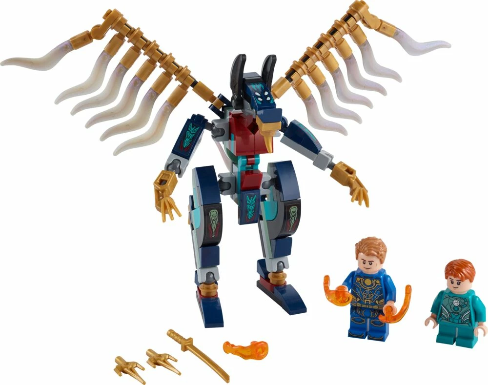 Barn kan gjenskape spennende scener fra Marvel Studios-filmen The Eternals, hvor en Deviant actionfigur angriper to kule superhelter.