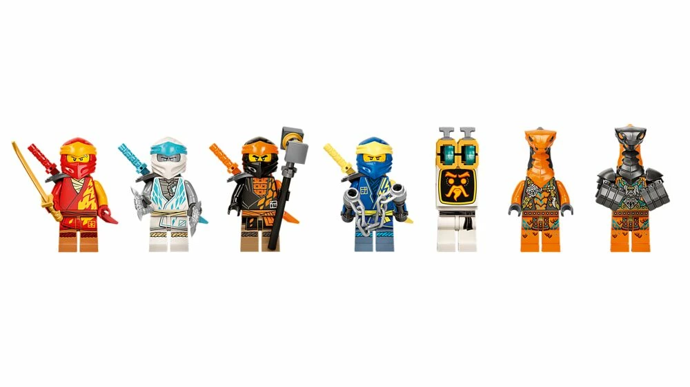 Denne robotleken er den ultimate stridsmaskin og består av en robot, en bil, en stridsvogn og et jetfly, som alle kan lekes med hver for seg. Førsteklasses byggesett med mange minifigurer Denne flotte leken inkluderer sju minifigurer, inkludert Kai, Jay, Zane og Cole, samt Wu Bot og den onde slangeduoen Kobramekaniker og Boaødelegger, og gir barn muligheten til å iscenesette spektakulære kamper. Fra januar 2022 får barn et samlerbanner når de fullfører oppdraget og beseirer ninja-motstanderne sine. Byggesett som styrker fantasien til ninja-interesserte barn NINJAGO® leker lokker barn vekk fra skjermene sine og inn i en spennende verden full av fantasi og action. Der kan de bli med ninja-heltene sine og slåss mot onde krefter med mange byggesett som inkluderer roboter, drager og templer.