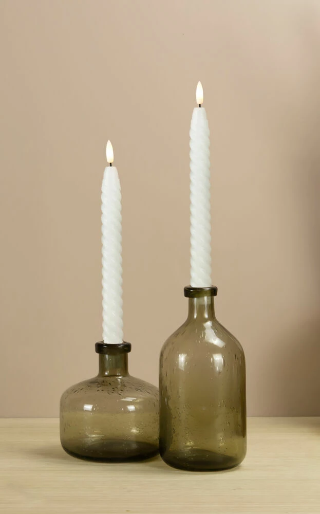 LED tvinnet kronelys i voks 2 pk. Farge hvit eller sand. Høyde 25 cm