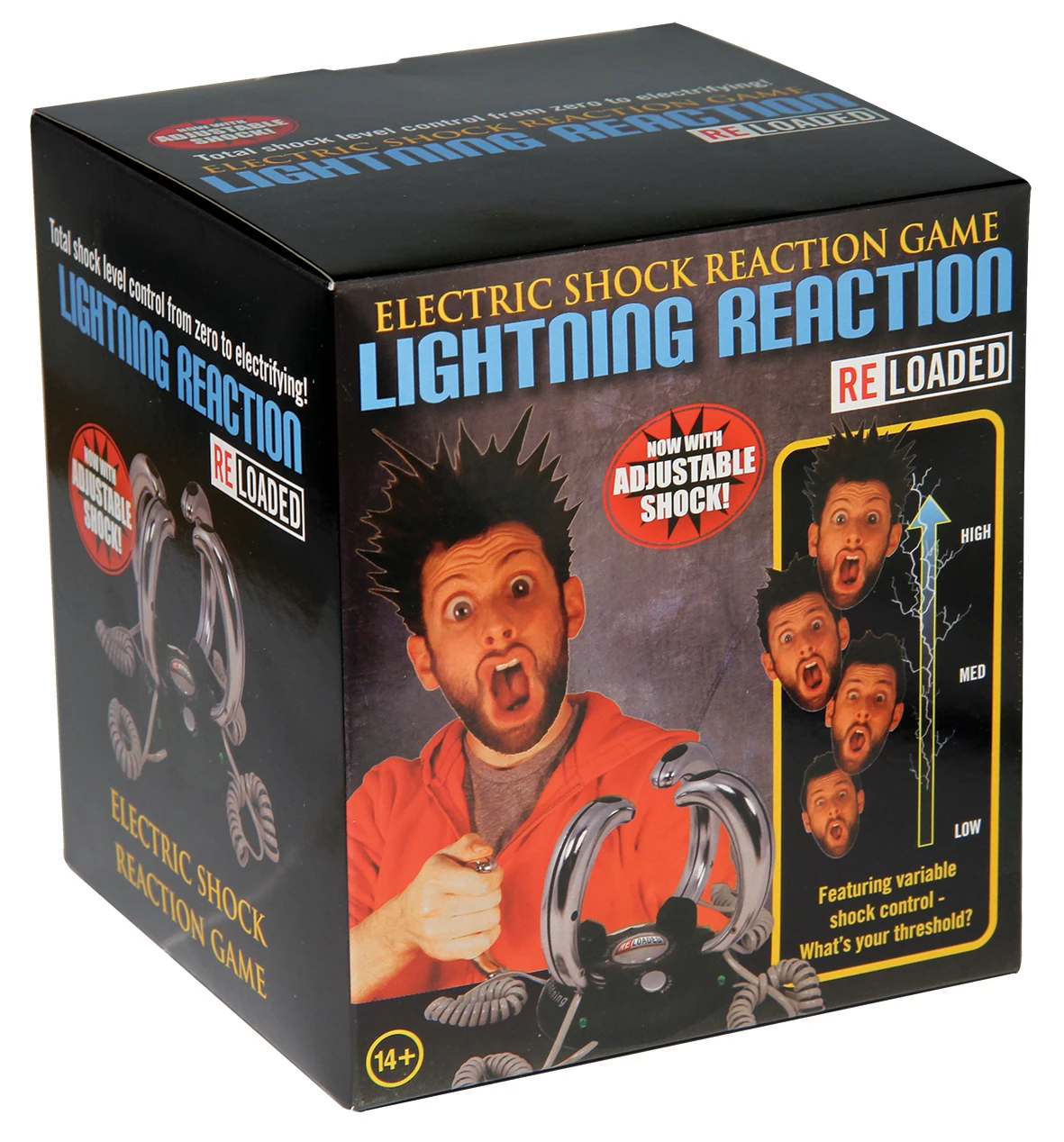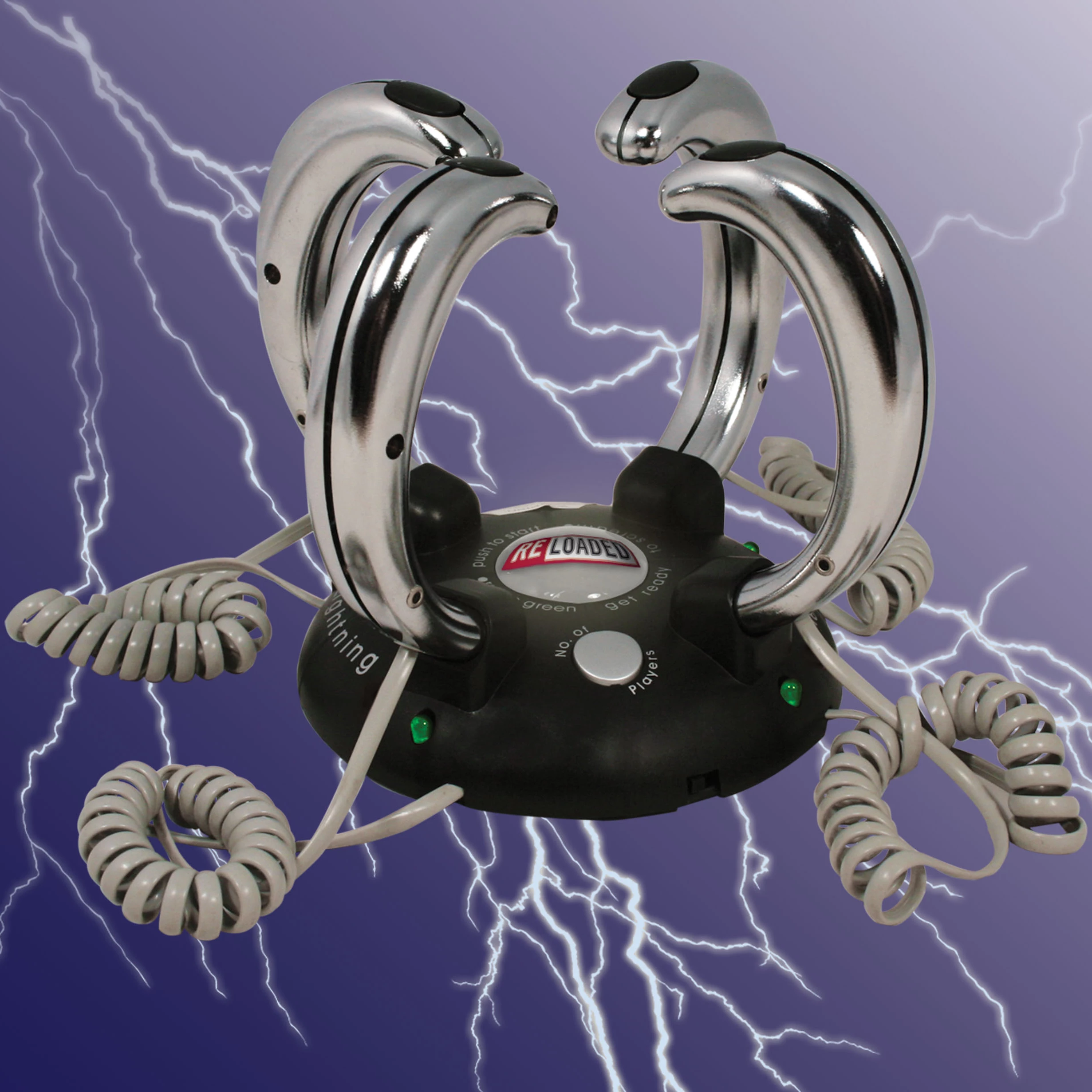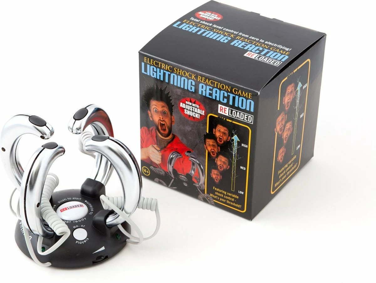 Lightning Reaction Reloaded er et nervepirrende spill for 2-4 spillere med sjokkerende konsekvenser for taperne! Velg ditt «sjokknivå» og antall spillere. Ta en kontroller og trykk deretter på startknappen, som begynner å blinke rødt. Etter en nervøs ventetid (selvfølgelig med skummel musikk i bakgrunnen) vil startknappen begynne å blinke grønt og spillerne må nå trykke på knappen på kontrolleren. Spilleren med den tregeste responstiden får et ufarlig, men ubehagelig sjokk gjennom hånd. Krever 3 x AAA-batterier (ikke inkludert).