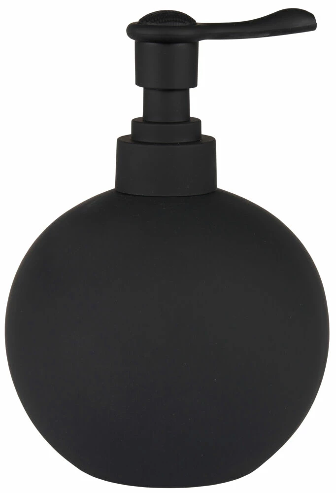 Såpedispenser i porselen med matt gummilakkering og plast med forkrommet lakkering.