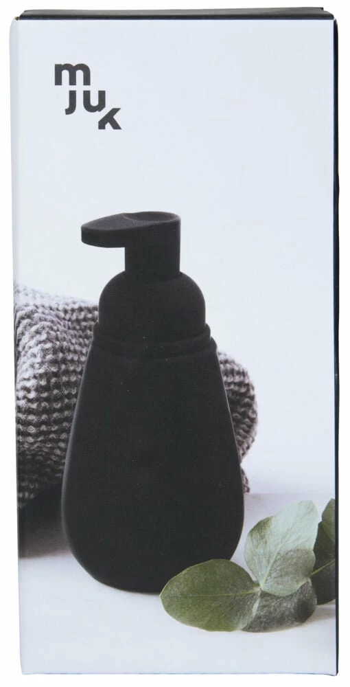 Mjuk såpeskumdispenser er i porselen og har matt gummiert overflate som gjør at den er behagelig å holde i. Såpedispenseren leveres med pumpehode som gir såpeskum når man blander flytende såpe med 60 % vann og 20 % luft. Mjuk serien er inspirert av skandinaviske farger og trender og er utviklet med fokus på enkle, funksjonelle løsninger og produkter som kan gjenbrukes. Dispenseren finnes i fargene grå, sort og petrolblå.