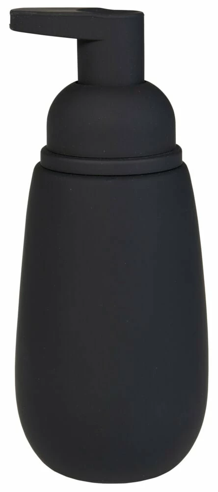 Såpeskumdispenser i porselen med matt gummilakkering og plast med forkrommet lakkering.