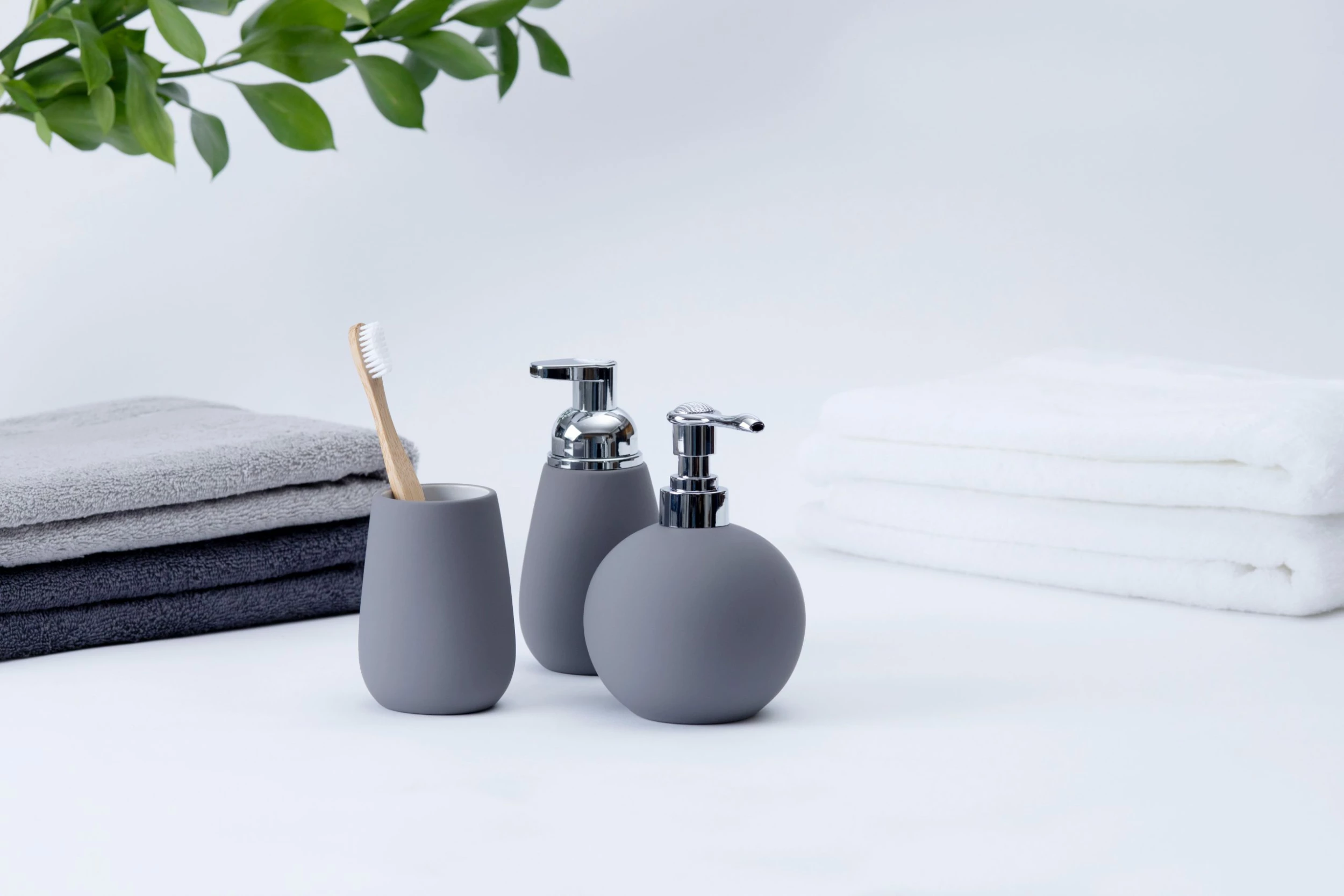 Mjuk såpeskumdispenser er i porselen og har matt gummiert overflate som gjør at den er behagelig å holde i. Såpedispenseren leveres med pumpehode som gir såpeskum når man blander flytende såpe med 60 % vann og 20 % luft. Mjuk serien er inspirert av skandinaviske farger og trender og er utviklet med fokus på enkle, funksjonelle løsninger og produkter som kan gjenbrukes. Dispenseren finnes i fargene grå, sort og petrolblå.