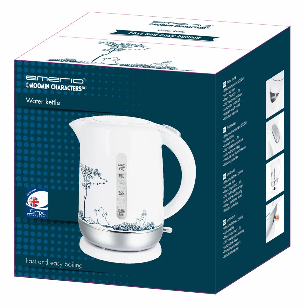 Denne eksklusivt designede og effektive vannkokeren fra Emerio er trådløs og dekorert med stilige mummidetaljer. Den har en effekt på hele 2200 watt og koker raskt opp vannet ditt.