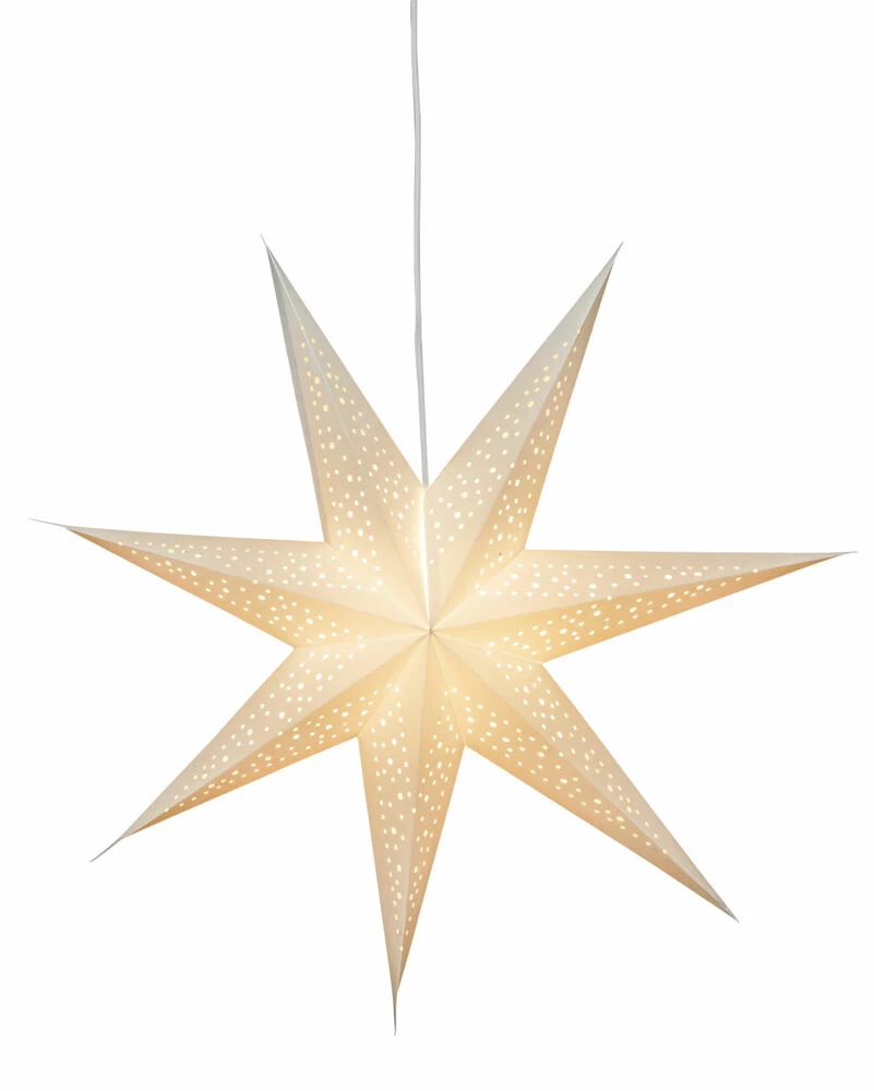 Flott papir adventstjerne med 7 armer. I kraft papir med hullmønster i stjerneformasjon.