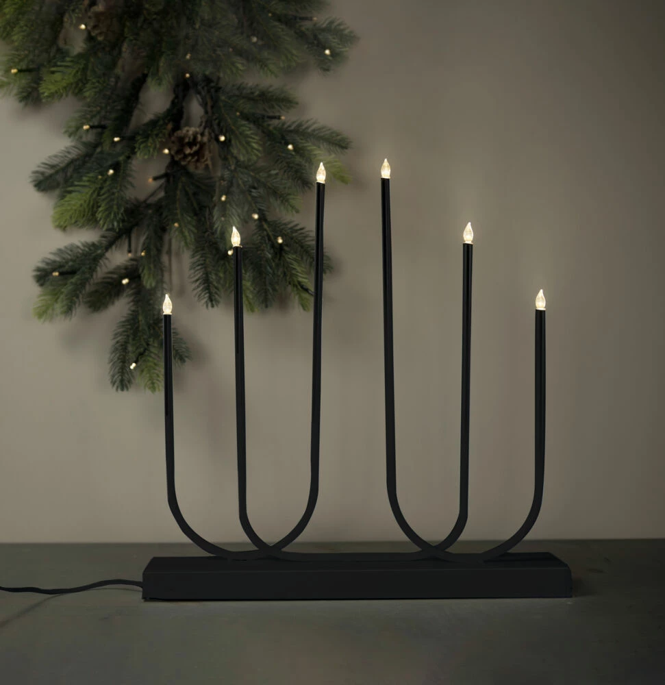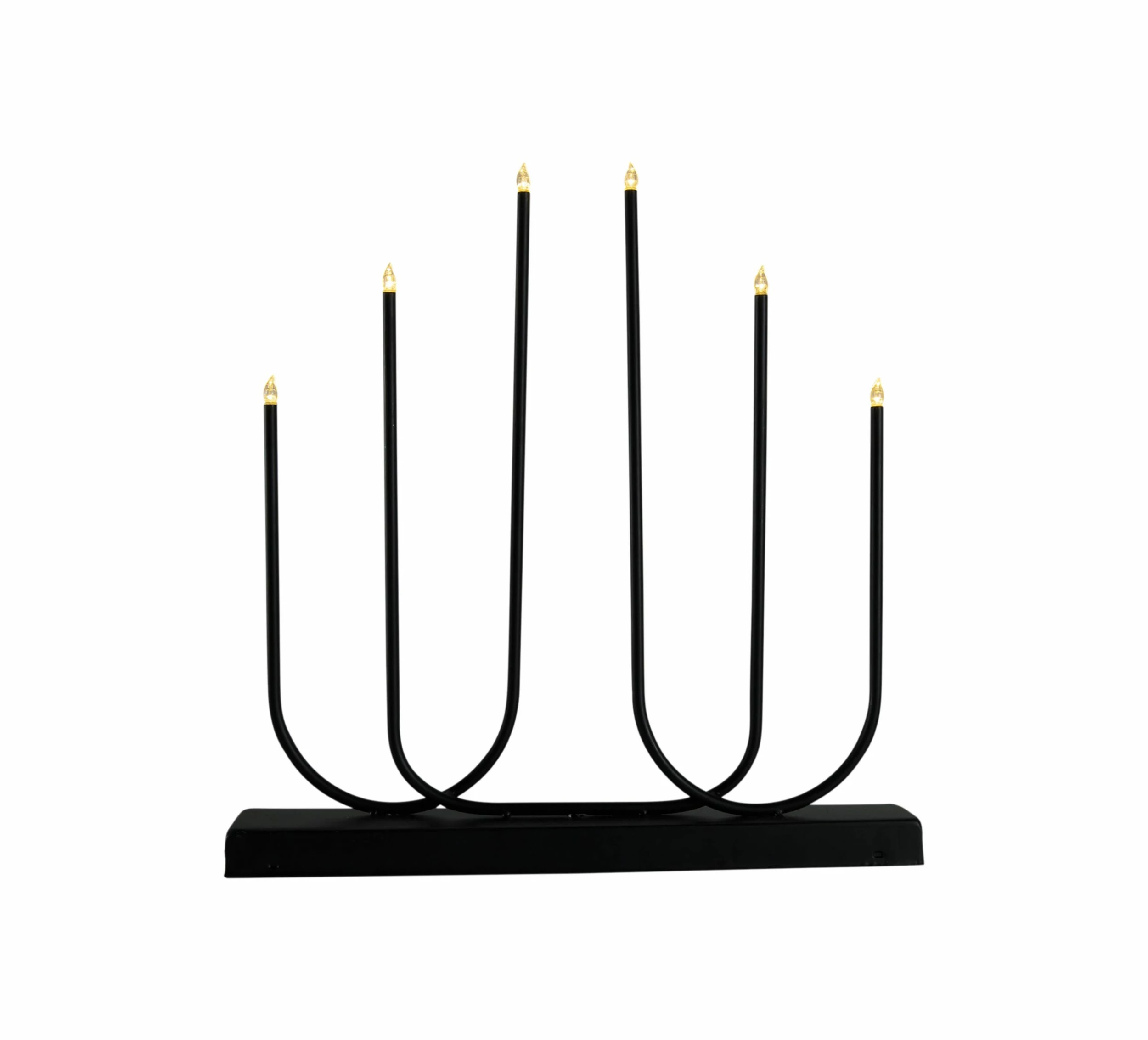 Buet Adventstake. Str: 40,5×39,5×5,5cm. 1,5 m hvit strømkabel med bryter. 6 varmhvite LEDlys. Materiale består av metall. Svart eller hvit