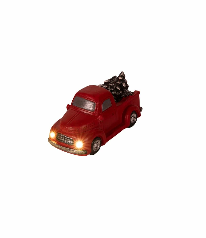 2 varmhvite LEDlys i frontlysene på bilen. Størelse 11×5,3x7CM. Bruker 2xAAA batterier, batterier medfølger ikke. Timerfunksjon: 6/18. Materiale: Polyresin