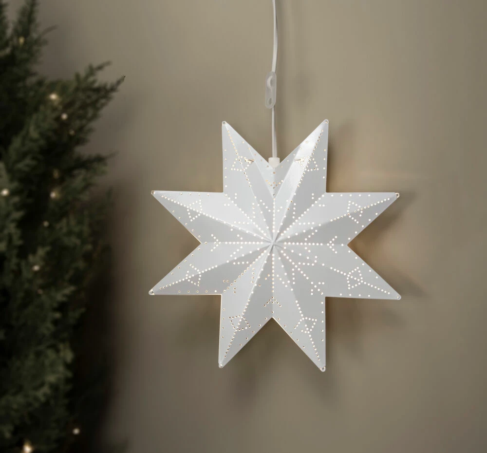 Melva stemningsfull adventstjerne i metall, med hvit eller gull farge