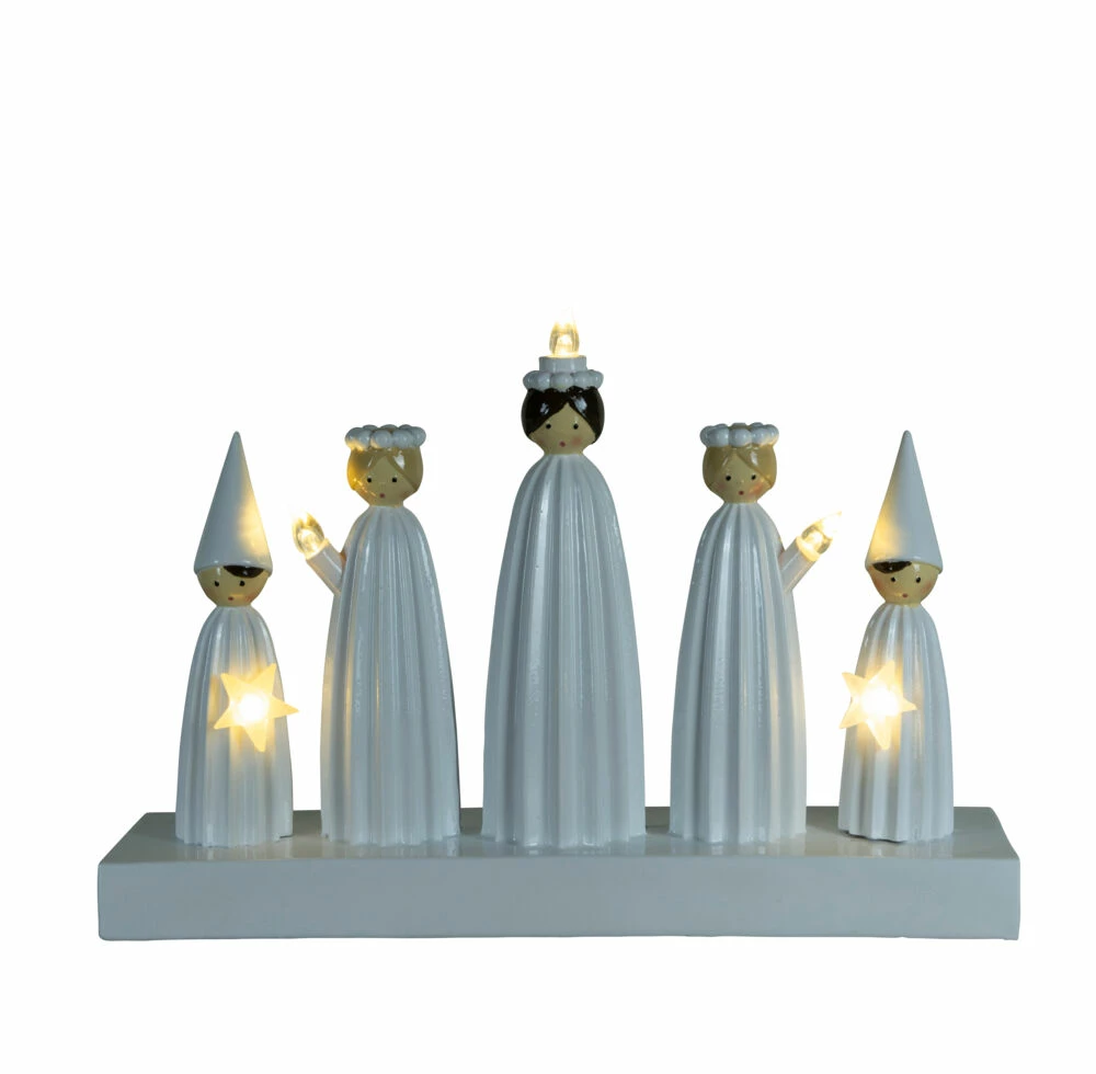 stemningsfull adventsstake med luciakor og 5 varmhvite led-lys.