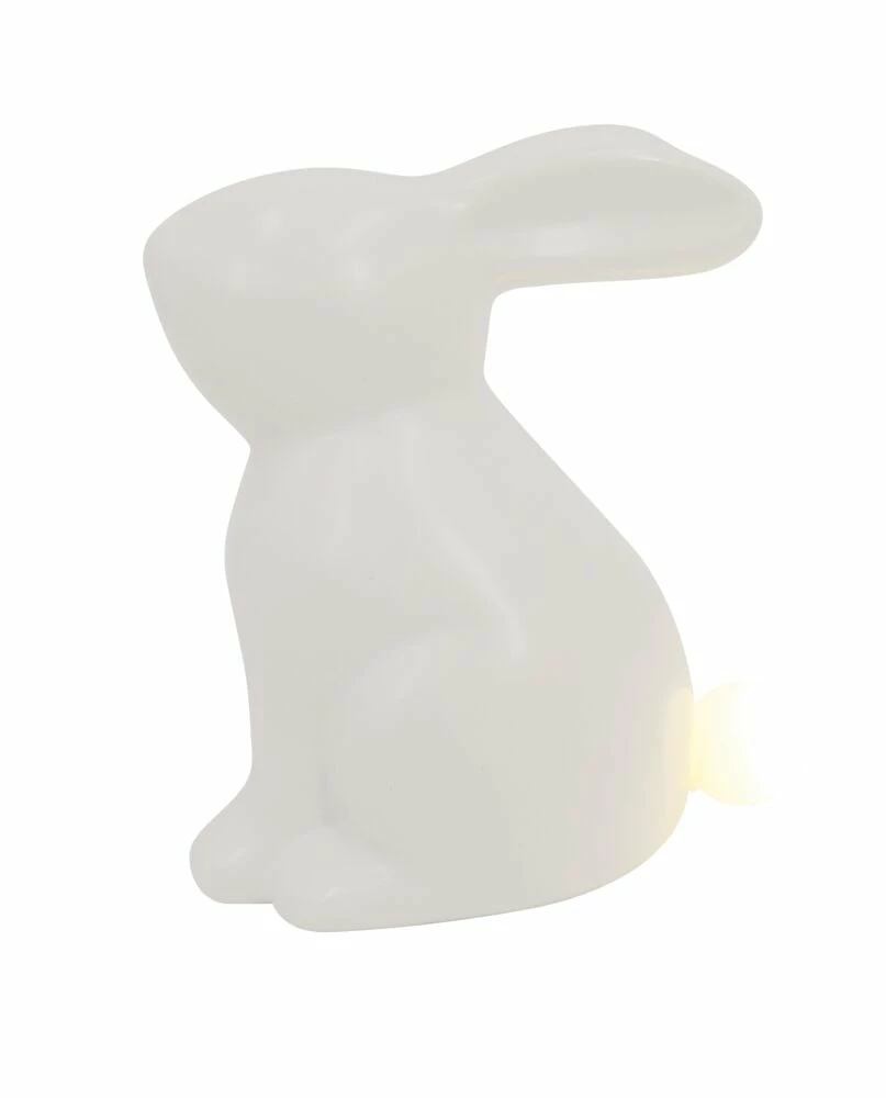 Brun eller hvit porselenskanin med LED-lys i halen. Høyde 11,5 cm
