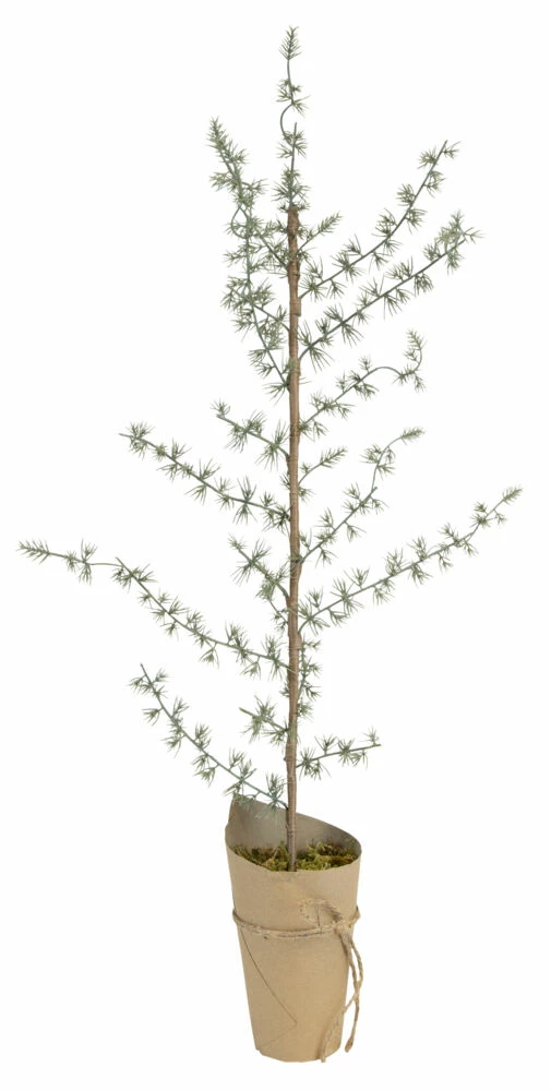 Selja kunstig sedertre i papirpotte. Finnes i ulike størrelser.