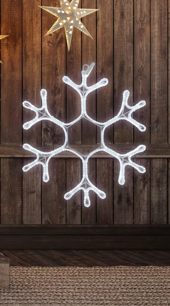 Stort snøfnugg med 4m neon LEDlys. Dekorasjon for utendørs bruk.