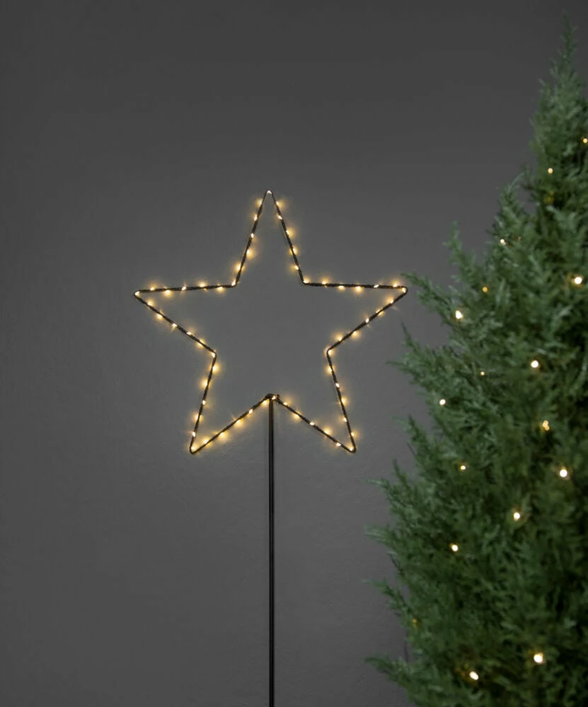 Elegant metall stjerne på fot med 60 varmhvite led-lys.