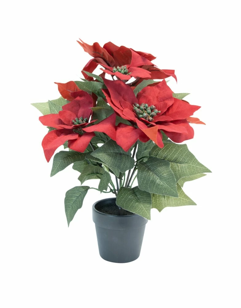 Naturtro julestjerne i potte, dyp rød