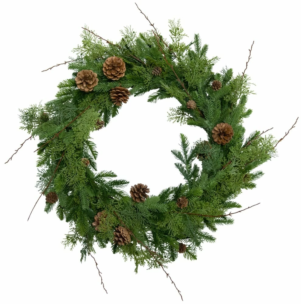 Naturtro grønn krans med kongler og kvist. Ø 60 cm.