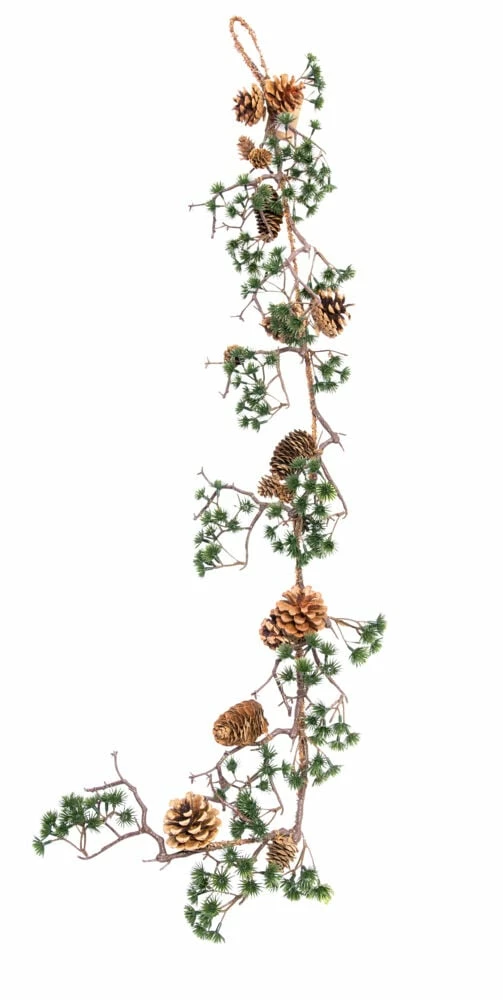 Lerketregirlander med kongler, L120cm, grønn/brun.