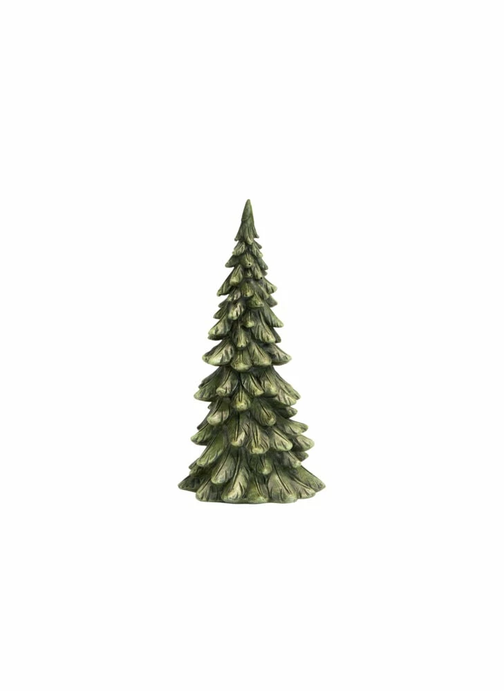 Dekorjuletre. Finnes i to størrelser, høyde: 18 eller 24 cm. Grønn