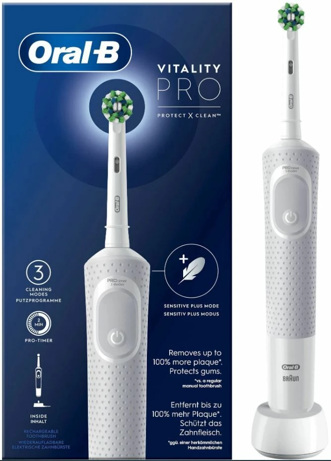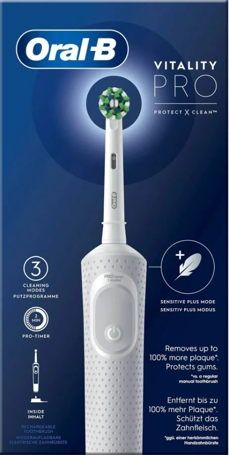 Oral-B Vitality Pro elektrisk tannbørste 427162 gjør at du ikke trenger å grue deg til å besøke tannlegen lenger. Den vil kraftig redusere plakk og vil i tillegg forbedre tann- og tannkjøtthelsen sammenlignet med en tradisjonell, manuell tannbørste.