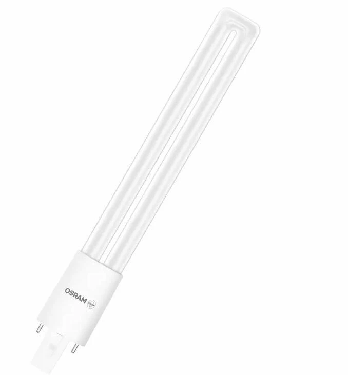 LED-pære som erstatning for standard Dulux S. 630 lumen, 6W tilsvarende 11W, lysfarge: 3000 Kelvin, G23-sokkel, levetid: 30000 timer, energiklasse: F