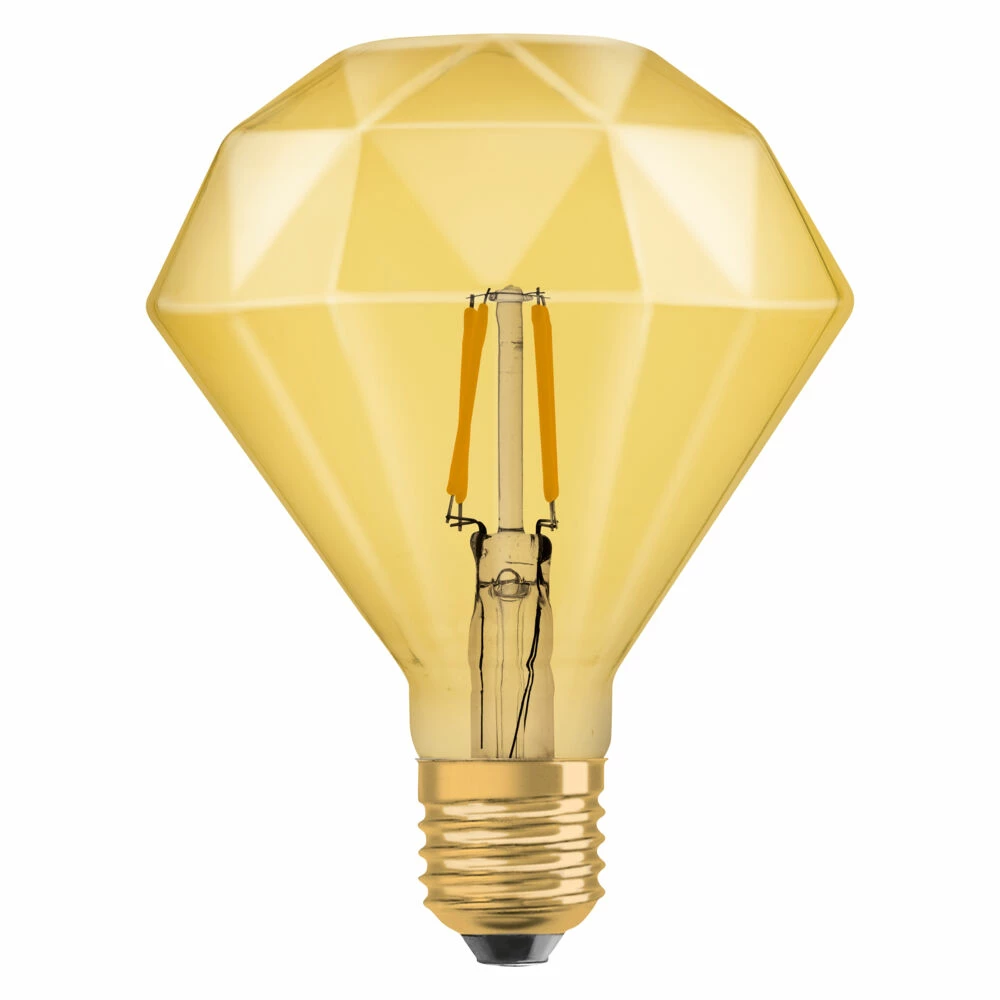 Diamantformet LED-lyskilde fra Osram med synlig «glødetråd». Lyspæren gjengir det samme, hyggelige lyset som de gamle glødepærene ga og anvendes blant annet til dekorasjonsbelysning i lamper der lyskilden syns. Med en levetid på 15 000 timer slipper du å bytte ut lyspæren så ofte.