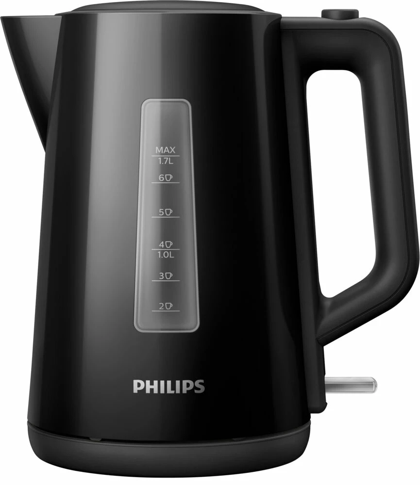 Philips-vannkokeren i plast har 1,7 l kapasitet, automatisk åpning av lokket og indikatorlys, slik at du kan lage favorittdrikken din raskt